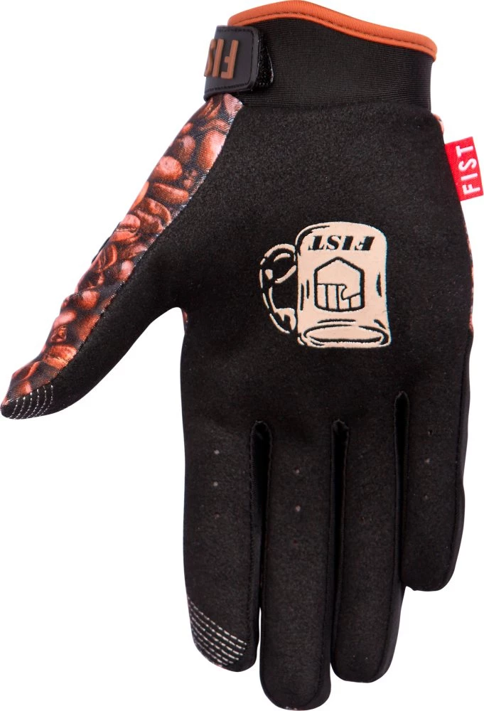 Nick Bruce entwirft den richtigen Handschuh für echte Kaffee-Liebhaber. Kaffee Bohnen auf der Vorderseite und eine heiße FIST Kaffeetasse in der Innenseite…