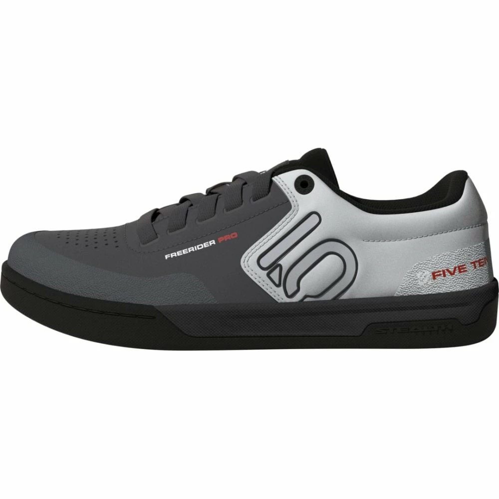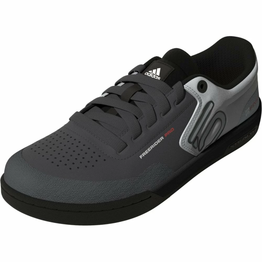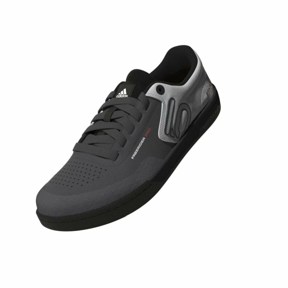 Dieser adidas Five Ten Freerider Pro MTB-Schuh liefert dir das volle Paket: Er garantiert optimale Kontrolle auf Flatpedals, ein Plus an Aufpralldämpfung durch einen verstärkten Zehenbereich und trockene Füße durch das schnell trocknende Synthetik-Obermaterial. Durch die Dämpfung und das wasserabweisende Design gibt er dir den ganzen Tag über Tragekomfort pur. Dank der Stealth® S1 Gummiaußensohle mit Dotty Profil haften deine Füße außerdem perfekt an der Pedale für ultimative Kontrolle.